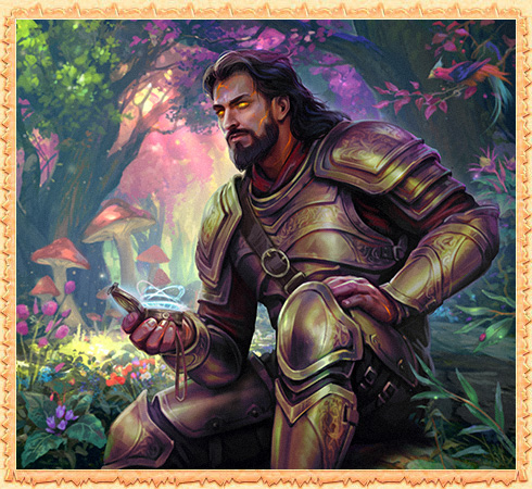 Wandernde Pilze, die leise miteinander flüstern, schauen aus der Ferne auf den Reisenden, der sich zur Rast niedergelassen hat. Das flammende Gesicht des Magmaren weckt in diesen Gegenden immer noch Neugierde, denn der magische Dindaat-Wald liegt in den Ausläufern des heiligen Mystras – im Reich der blauhäutigen Dschinns.