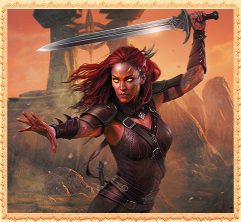 Её внешность слепит сильнее блеска волн в лучах полуденного Мирроу. Но человеческим глазам долго любоваться ей не придётся – абордажная сабля этой воительницы разит ещё надёжней, чем красота.
